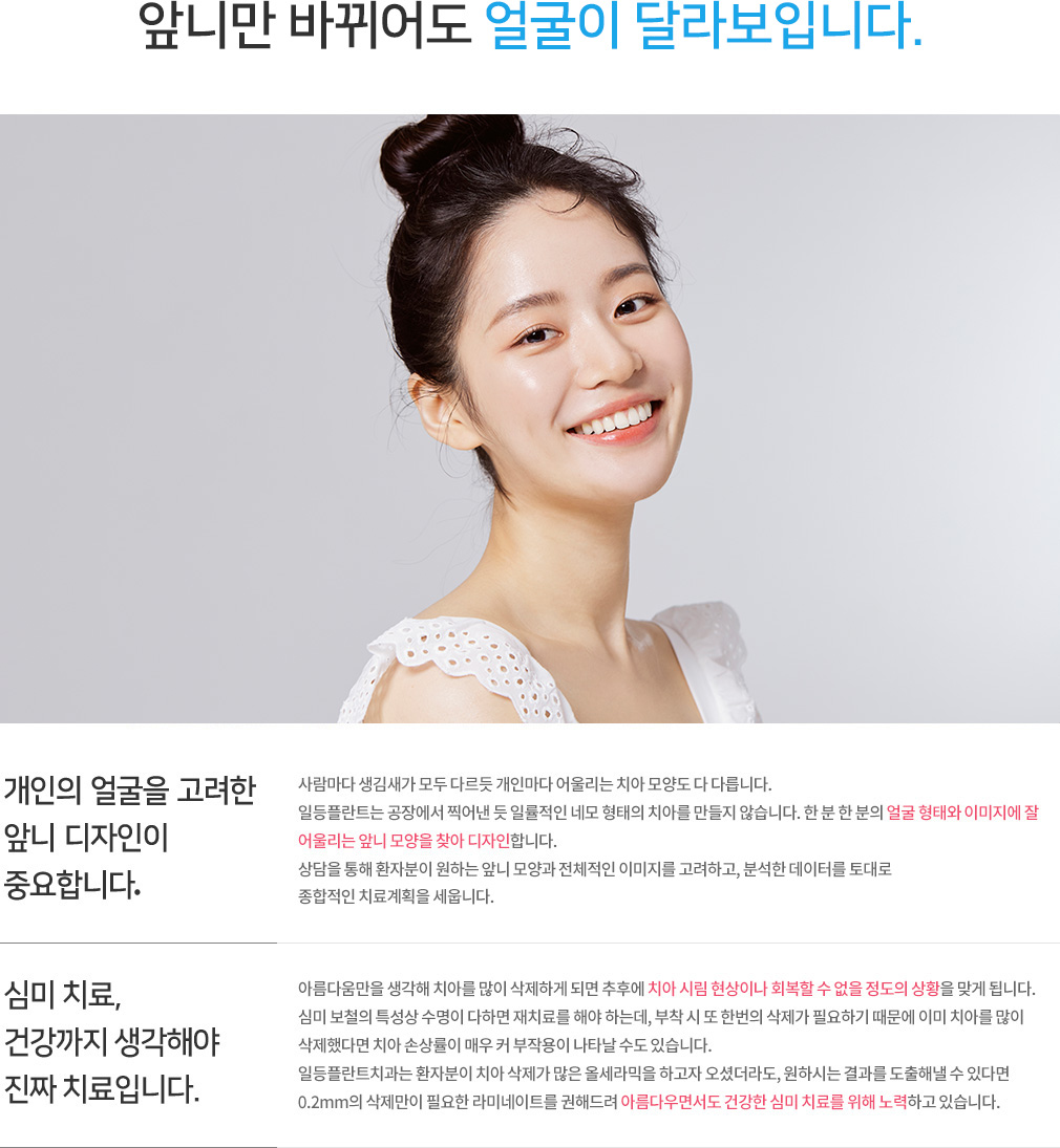 아름다움을 완성합니다!아름다움을 완성하는 일등플란트치과의 심미 치료를 경험해보세요.