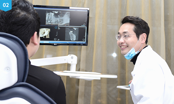 전문 의료진이 직접 환자와 1:1 상담과 진료를 통해 치아의 상태와 환자분의 고민을 살피며, 검사결과를 면밀하게 분석하고 그 분석 결과를 토대로 환자 상태에 맞는 최적화된 진료 계획을 수립합니다.