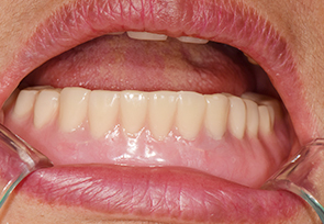 4~6개의 임플란트를 이용하여 틀니를 고정하는 방법입니다. 발음상의 문제로 인하여 주로 아래 틀니에 사용되며, 틀니의 움직임이 전혀 없어 자연치아에 버금가는 기능을 합니다.