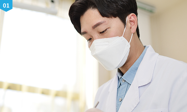 환자의 고민에 대한 충분한 상담을 통하여 문제점을 체크하고, 환자의 구강 건강상태 및 치아로 인한 불편함, 치료 희망 사항을 파악합니다.