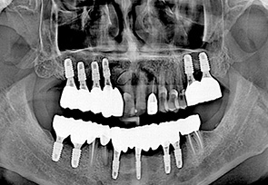 과거에는 이런 경우 틀니를 사용했지만, 임플란트 치료가 발달하면서 저작기능과 심미적인 효과가 높은 전악 임플란트 치료가 늘고 있습니다.