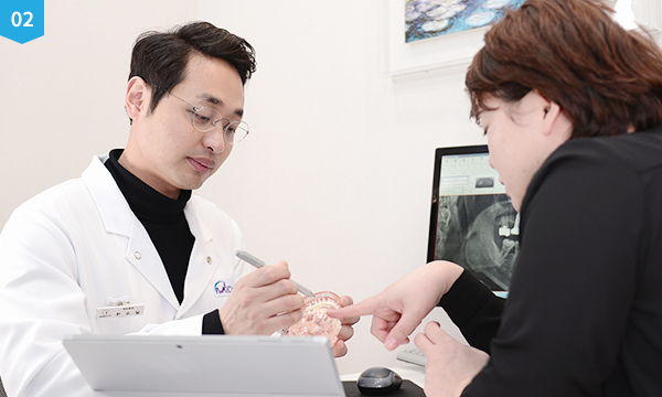 전문 의료진이 직접 환자와 1:1 상담과 진료를 통해 치아의 상태와 환자분의 고민을 살피며, 검사결과를 면밀하게 분석하고 그 분석 결과를 토대로 환자 상태에 맞는 진료 계획을 수립합니다.