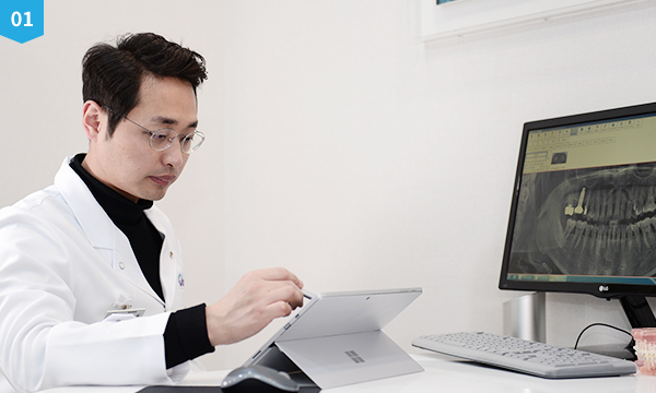 전문 의료진이 직접 환자와 1:1 상담과 진료를 통해 치아의 상태와 환자분의 고민을 살피며, 검사결과를 면밀하게 분석하고 그 분석 결과를 토대로 환자 상태에 맞는 최적화된 진료 계획을 수립합니다.