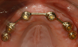 4~6개의 임플란트를 이용하여 틀니를 고정하는 방법입니다. 발음상의 문제로 인하여 주로 아래 틀니에 사용되며, 틀니의 움직임이 전혀 없어 자연치아에 버금가는 기능을 합니다.